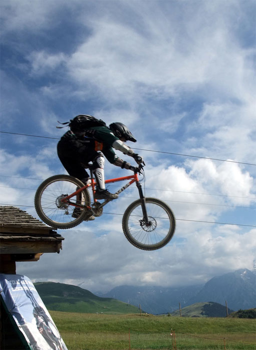Our mate Joh has been out racing the Megavalanche last week. He took his new orange BFe with him, but after practice decided against going with it in the main event Robbie Style. Still, he had plenty of fun on it, and as these photos show, you really can drop it off buildings! ;-)
